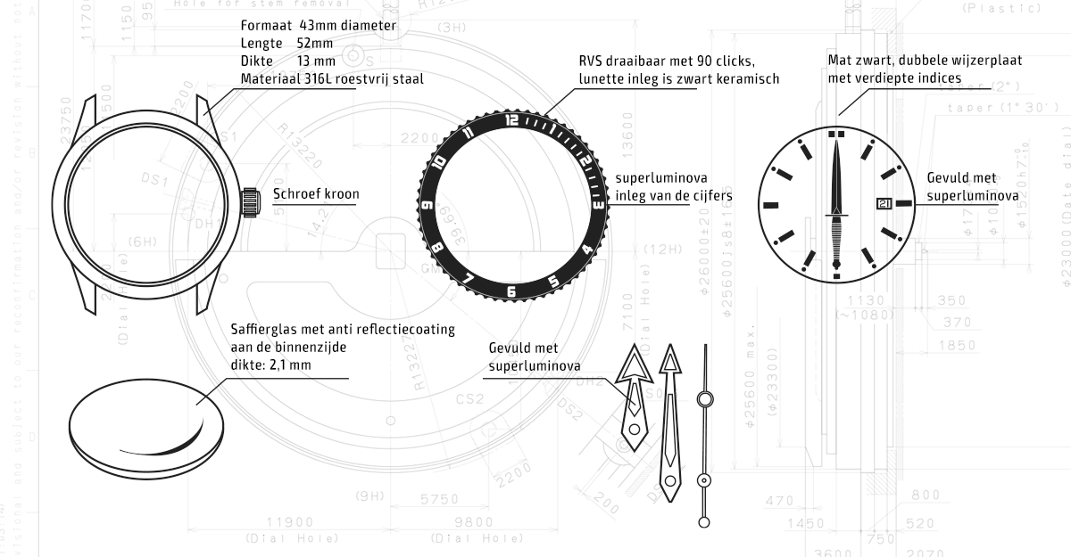 Het horloge is ontwikkeld samen met Revolo watches/Custom made Quality BV; een Nederlandse horlogeproducent. De onderdelen zijn in productie en de horloges zullen vanaf maart 2026 worden geleverd.